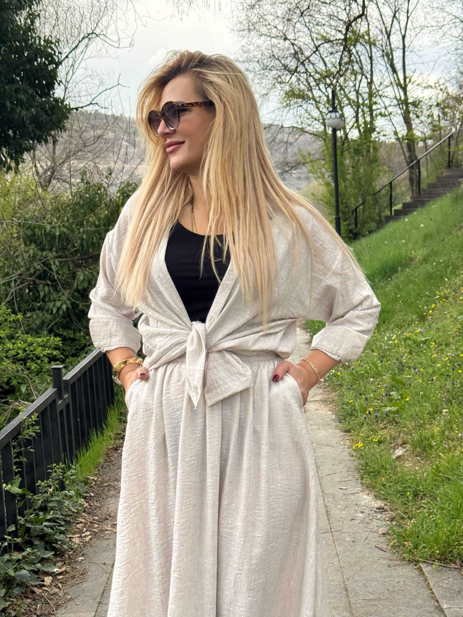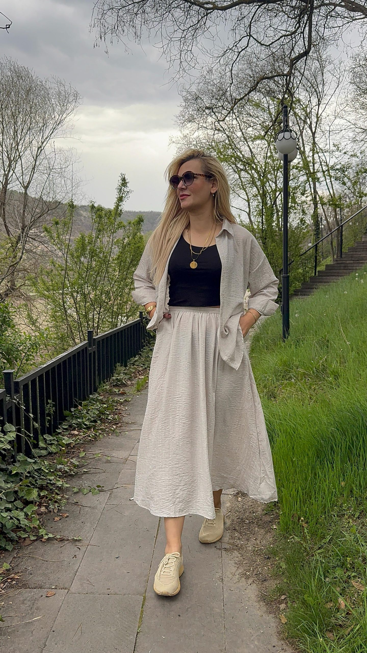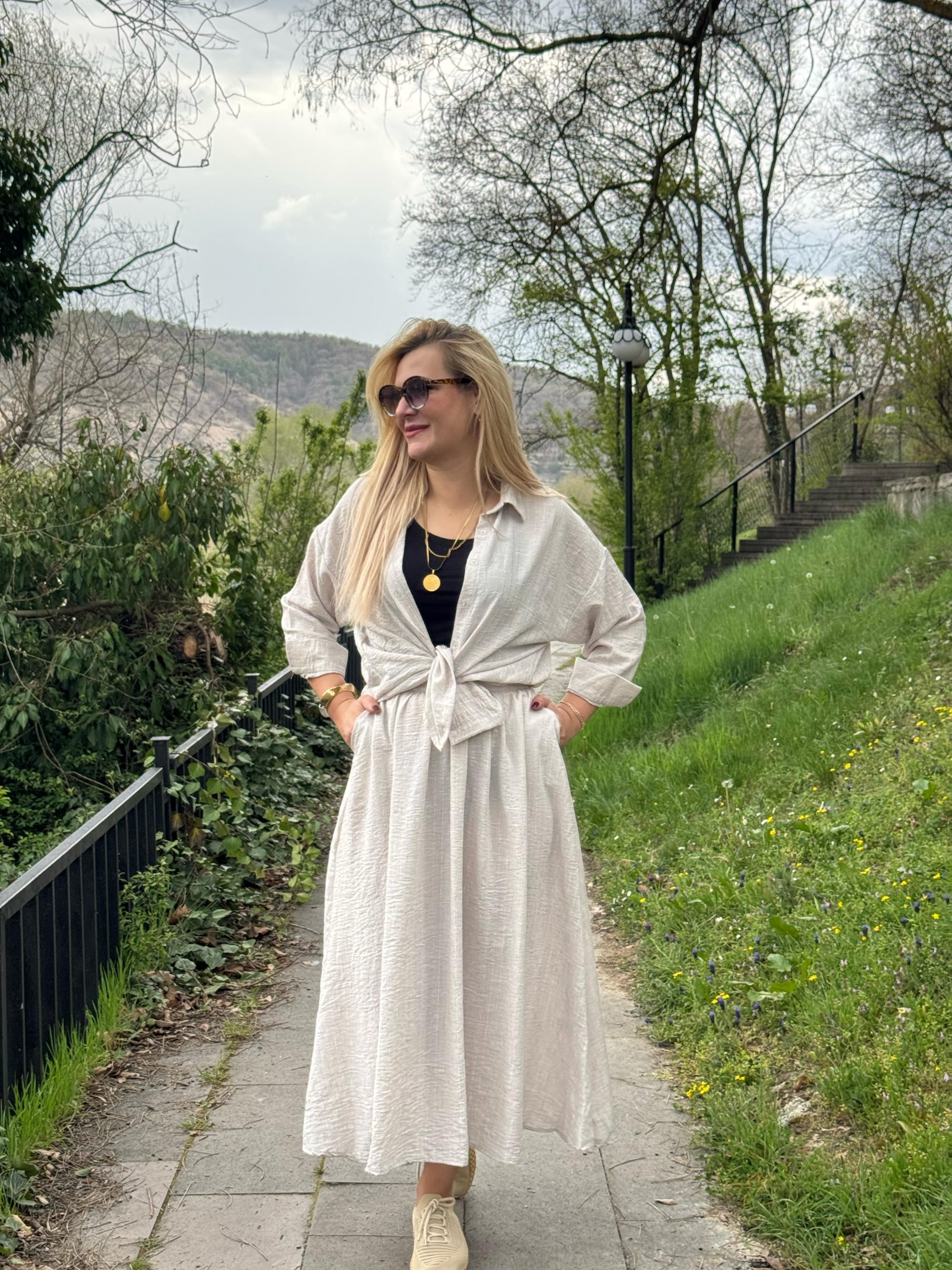 • Oversize gömlek ve beli lastikli geniş etek• Nefes alabilen dokulu kumaş