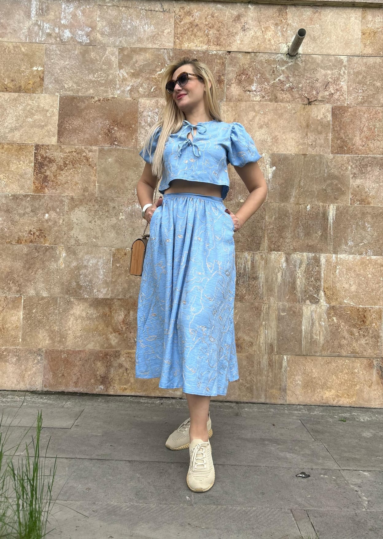 • Modern bağlamalı crop üst – fırfır ve mini yaka detayı