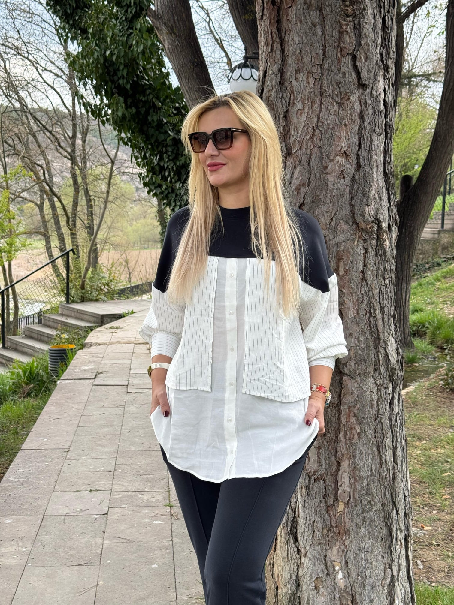 • Önden gömlek görünümü – katmanlı tasarım efekti